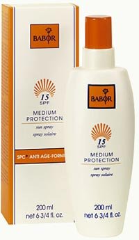 BABOR Medium Protection Sun Spray SPF 15 is a light and oil-free, water-resistant spray lotion for the face and body with an anti-aging effect. Medium sun protection factor SPF 15 absorbs extremely quickly and is ideal for use during sporting activities. BABOR Medium Protection Sun Spray SPF 15 protects sun-sensitive skin from sunburn, sun allergies and strengthens the skin's natural barrier properties.
